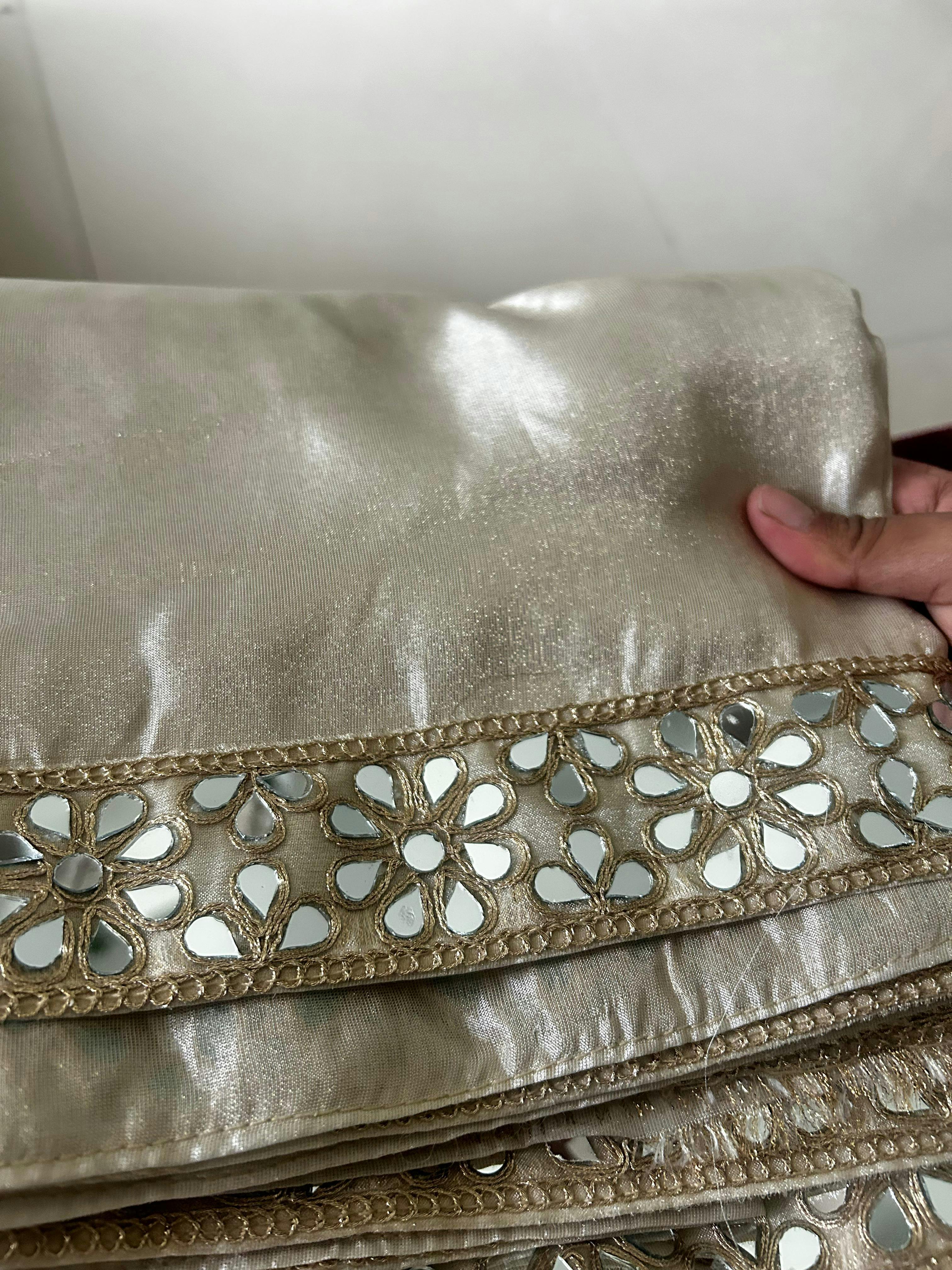 Let's create your Shehzadi look with our new mirror work designer pure tissue silk saree and dazzle into real mirrors💃🏻
