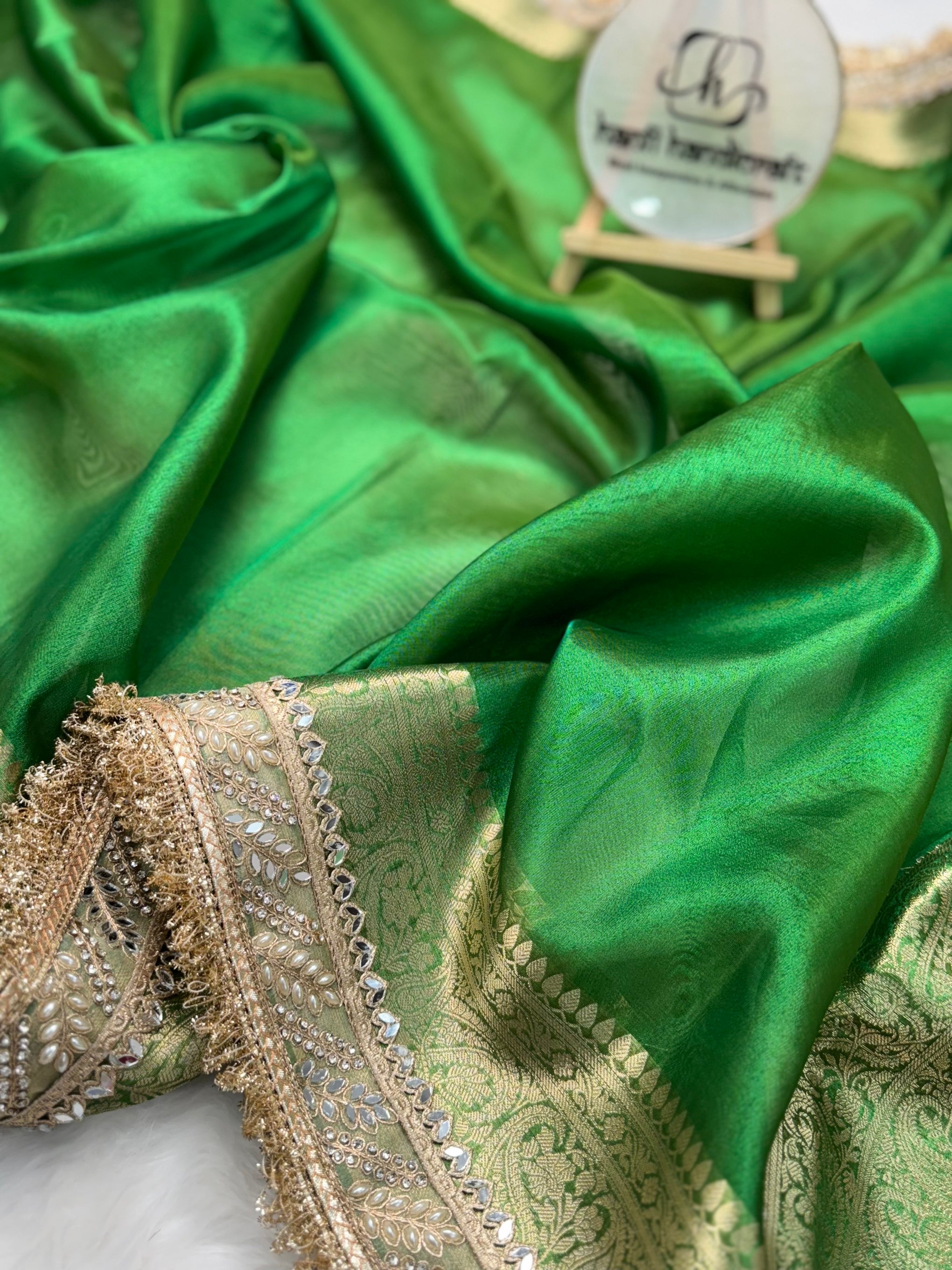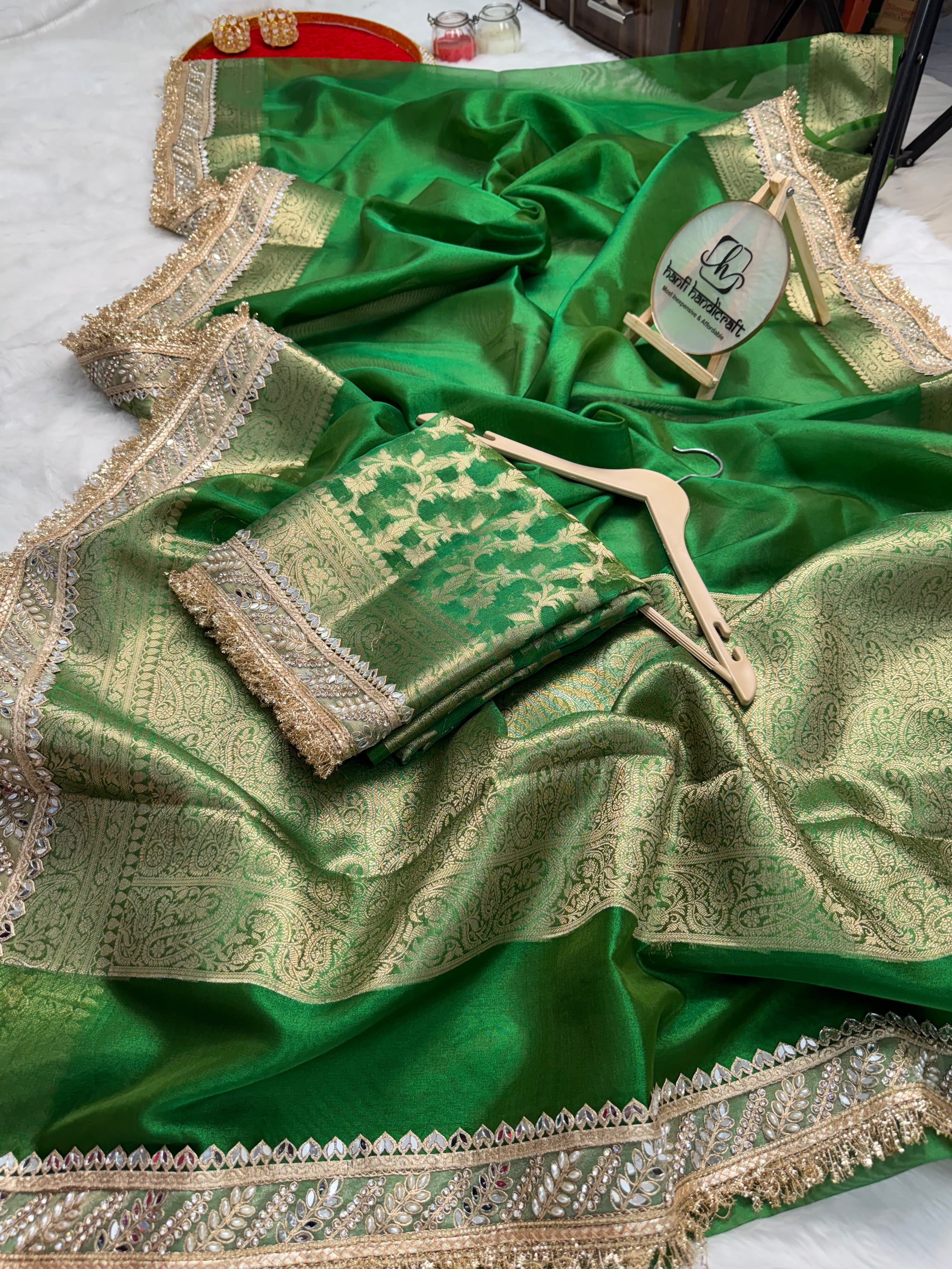 Parakeet Green Banarasi Riwaayat Tissue Silk Saree | Easy To Carry