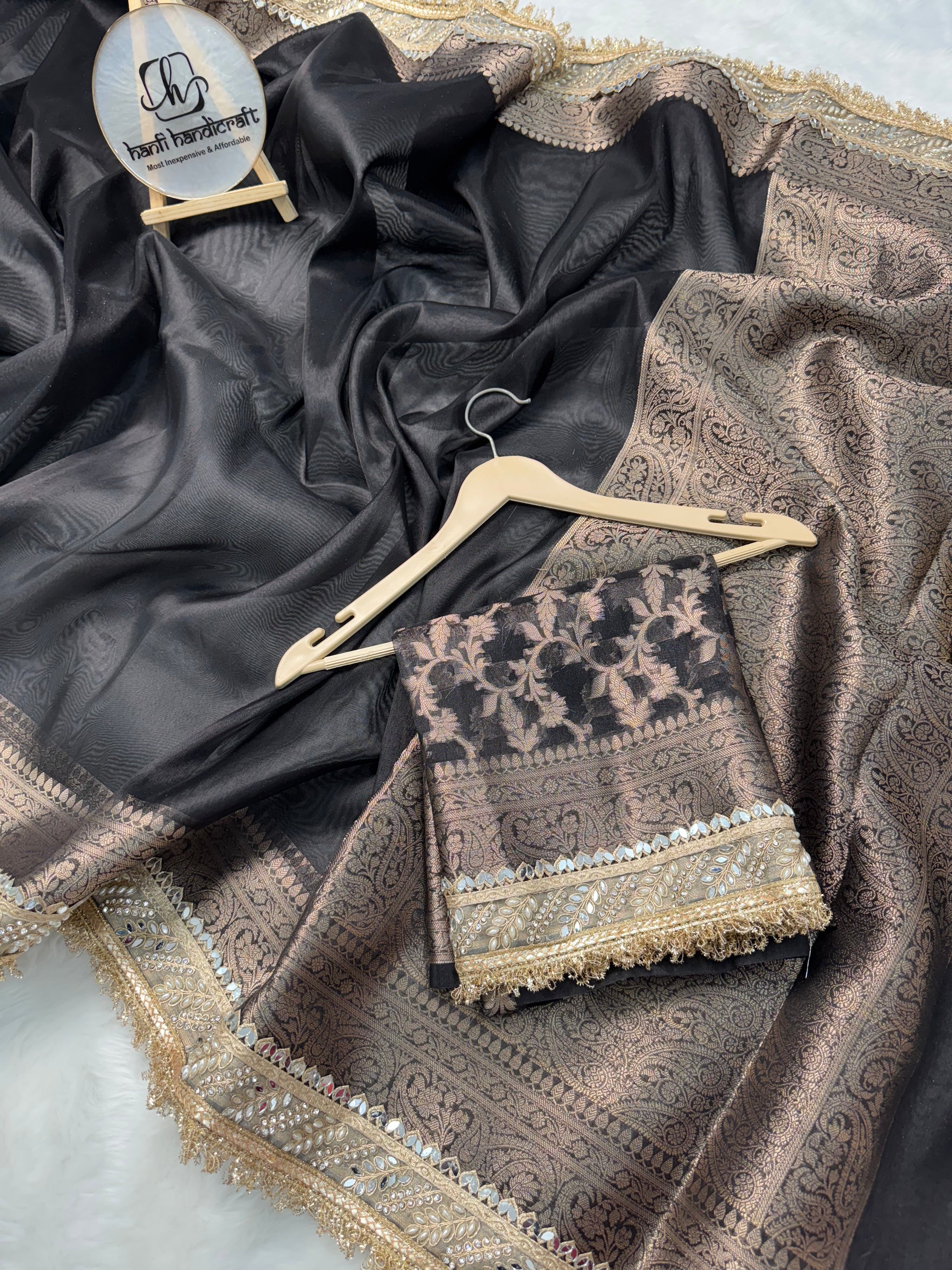 Royal Black Banarasi Riwaayat Tissue Silk Saree | Easy To Carry