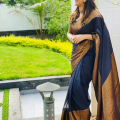 Indigo Blue Banarasi Woven Soft Saree with Antique Zari Border & Pallu
