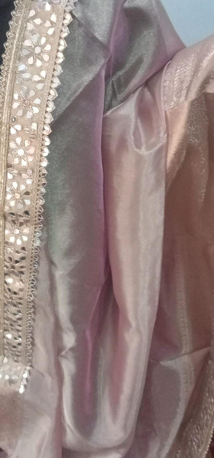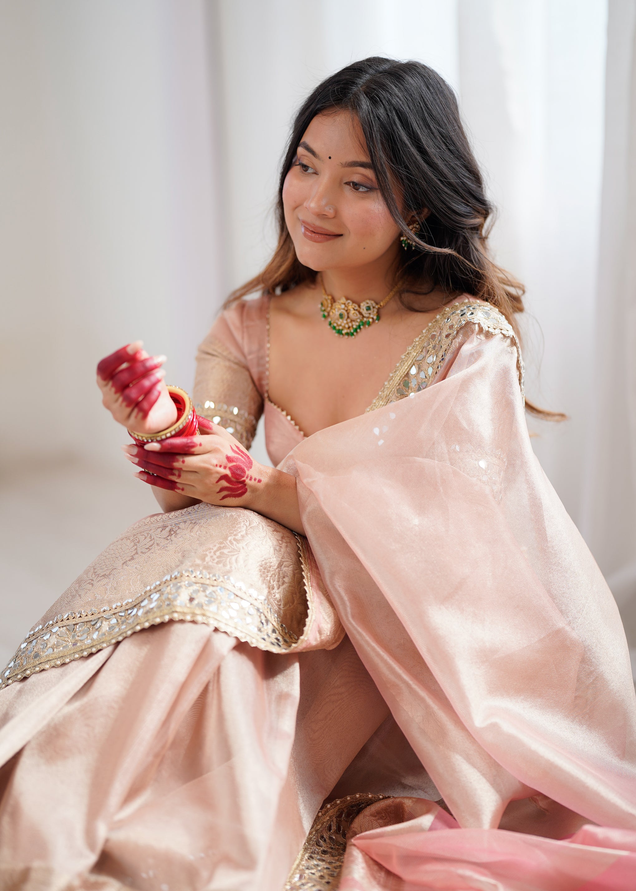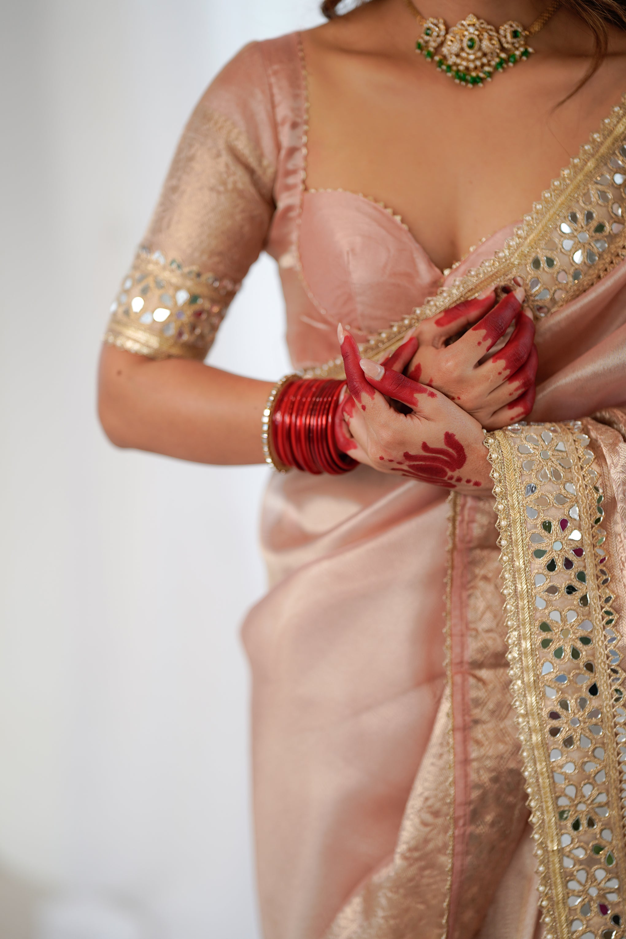 Baby Pink Banarasi Rajkumari Mirror Work Tissue Silk Saree