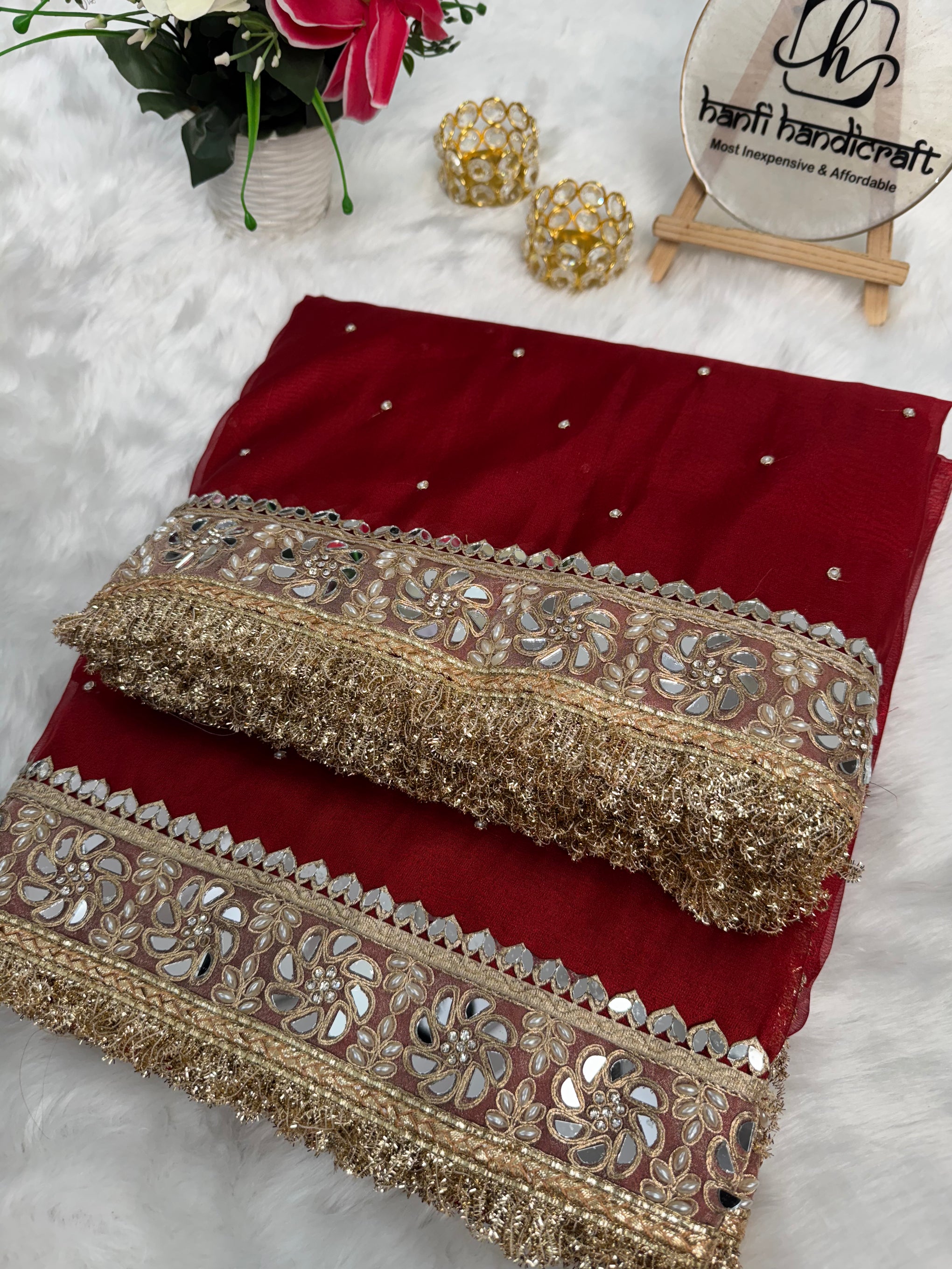 ● Work : Hand Pearl Embellishment & Mirror Work Border