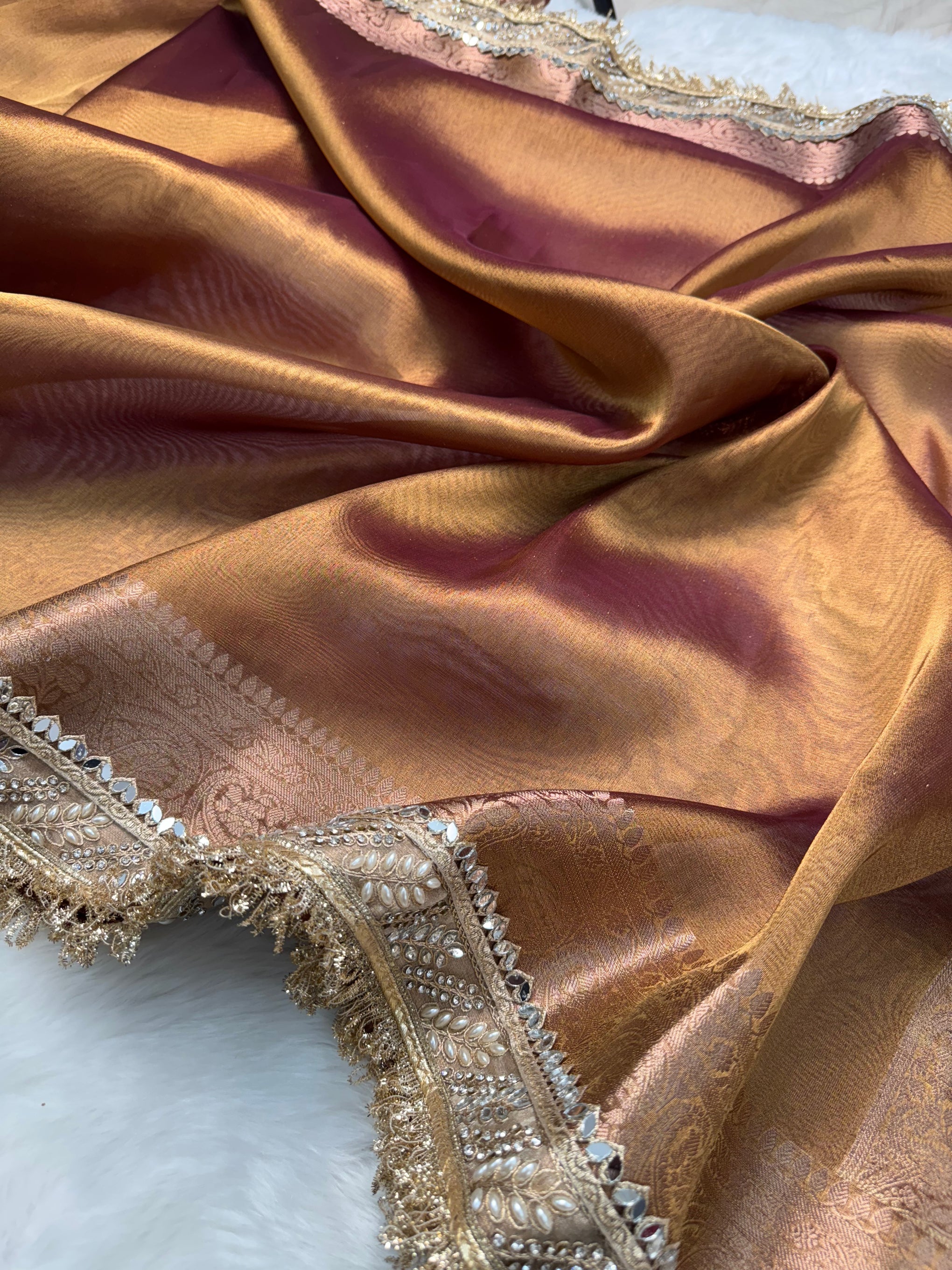 Copper Gold Banarasi Riwaayat Tissue Silk Saree | Easy To Carry