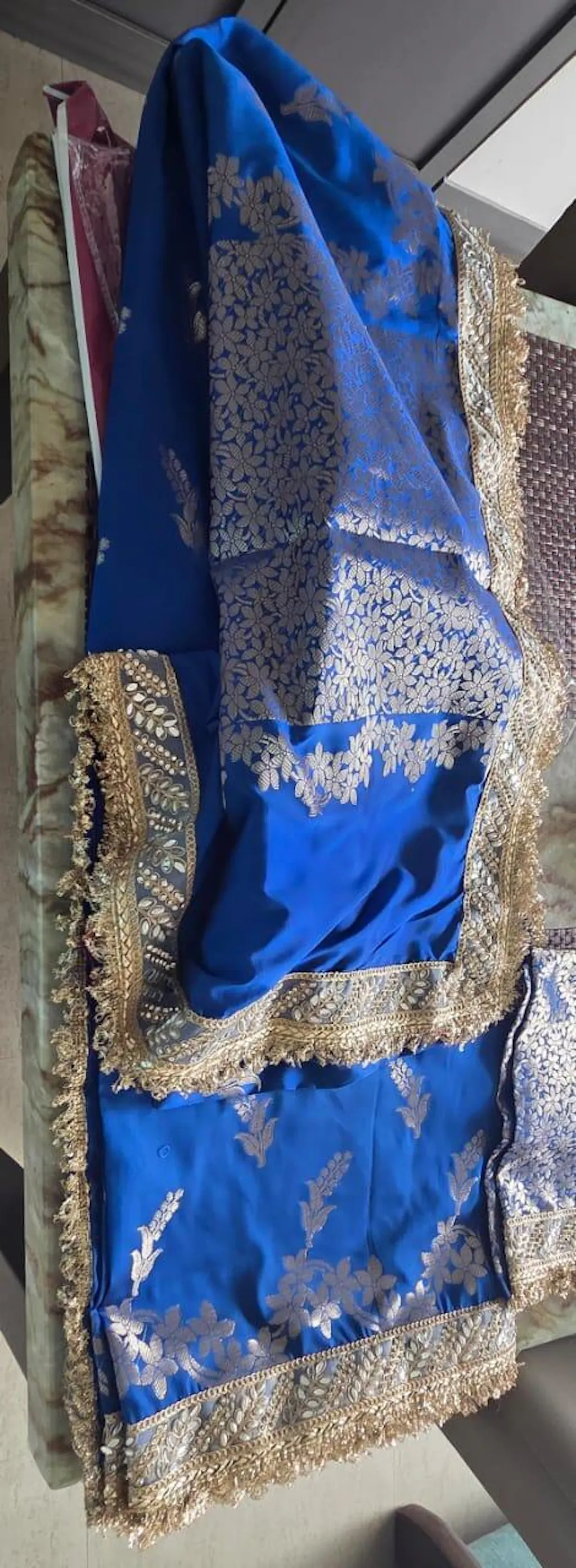 Royal Blue Banarasi Nazakat Mirror-Pearl work Saree